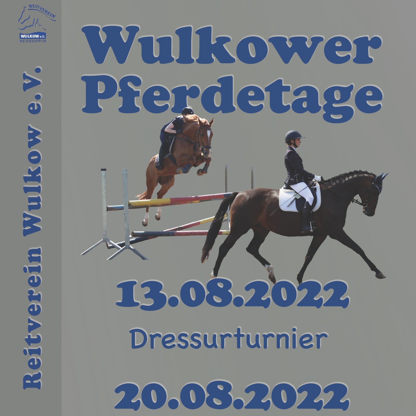 Nicht verpassen! August bedeutet immer, dass die Wulkower Pferdetage wieder vor der Tür stehen. Los gehts am 13.08. mit unserem Dressurturnier und am 20.08 folgen dann die Springreiter.