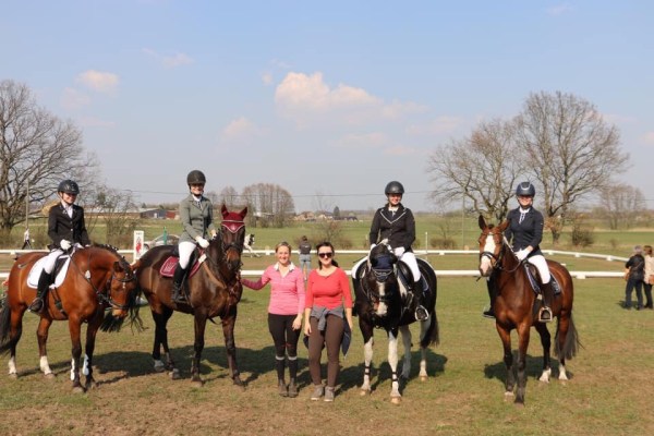 Am vergangenen Wochenende hieß es denn für unsere Kinder Saisonstart. In Linde wurde E-Springen und Caprilli-Test genannt. Im Parcours war die Aufregung groß. Doch alle zeigten souveräne Leistungen und unsere Linda konnte sich mit Brownie in einem starken Starterfeld noch eine begehrte Schleife sichern. Im Caprilli-Test füllte sich dann das Schleifenkonto für unseren Stall. Als erste ging Alina mit ihrer Cassy an den Start. Beide zeigten auf dem ersten Auswärtsturnier eine harmonische Runde. Unsere Zwillinge Saskia und Sofie sicherten sich mit einer 8,0 und einer 7,8 Rang zwei und vier. Direkt dahinter rangierte Linda mit einer Wertnote von 7,3 auf Platz 5.